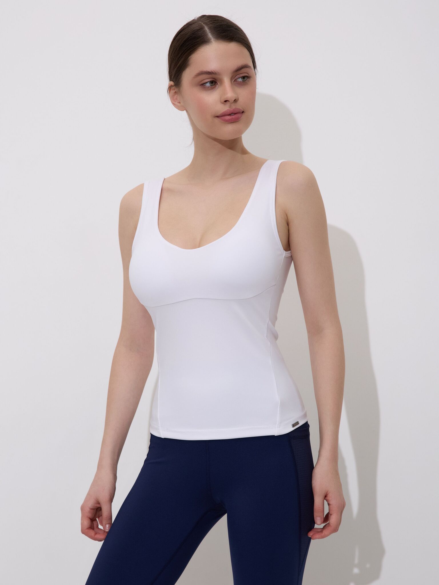 Эластичные бретели, обеспечивающие надежную поддержку, гарантируют максимальный комфорт без излишнего давления на кожу, позволяя вам чувствовать себя уверенно и свободно. Каждый элемент дизайна майки продуман до мелочей: округлый вырез подчеркивает линию плеч и создает гармоничный силуэт, что делает эту модель универсальной для создания стильных образов на каждый день.